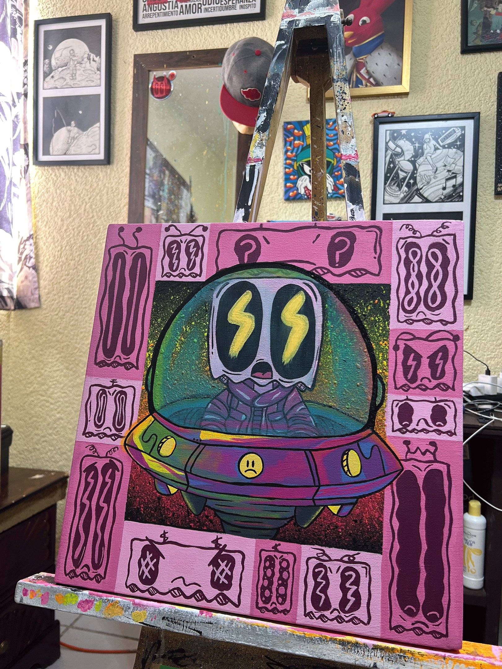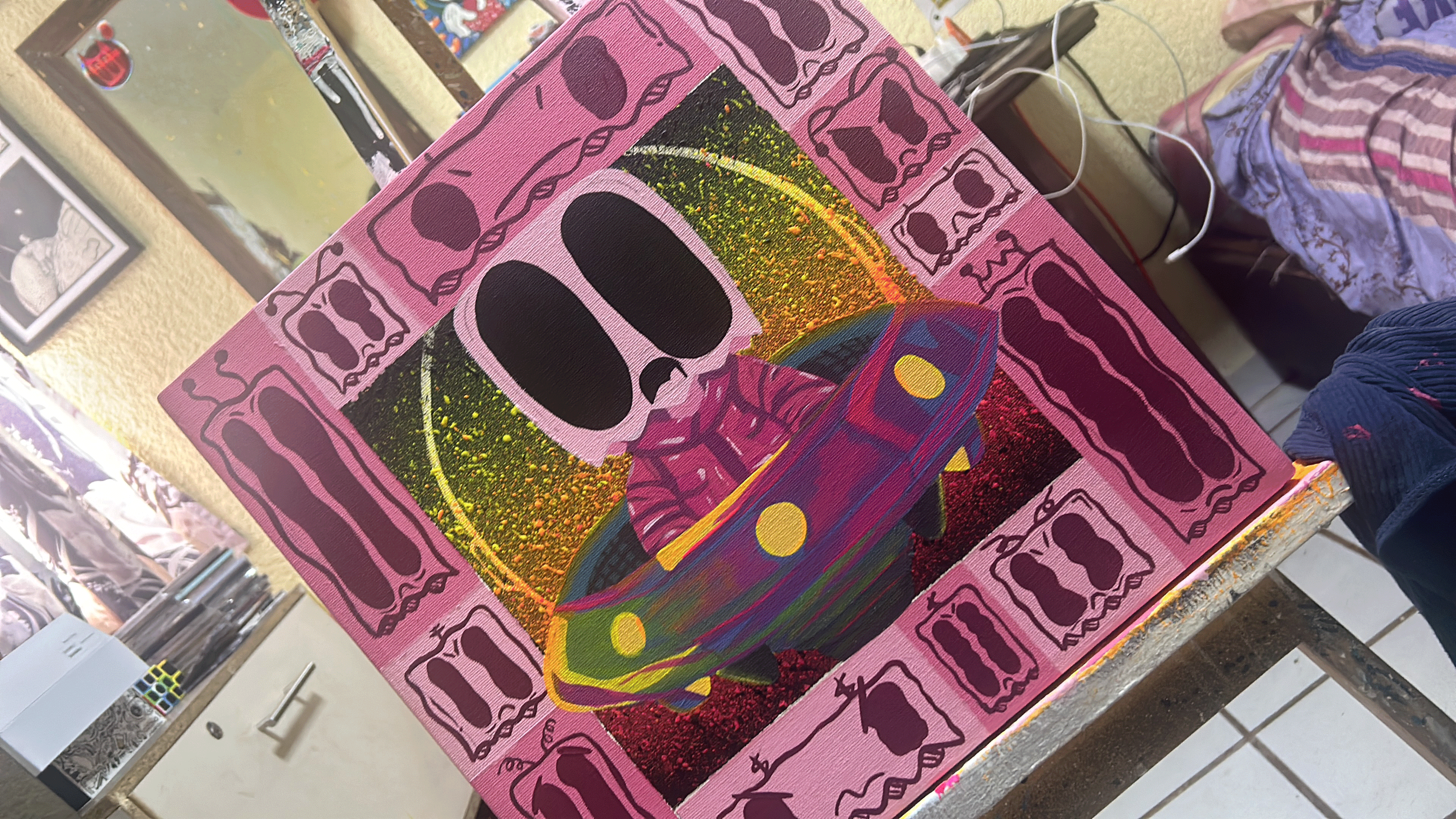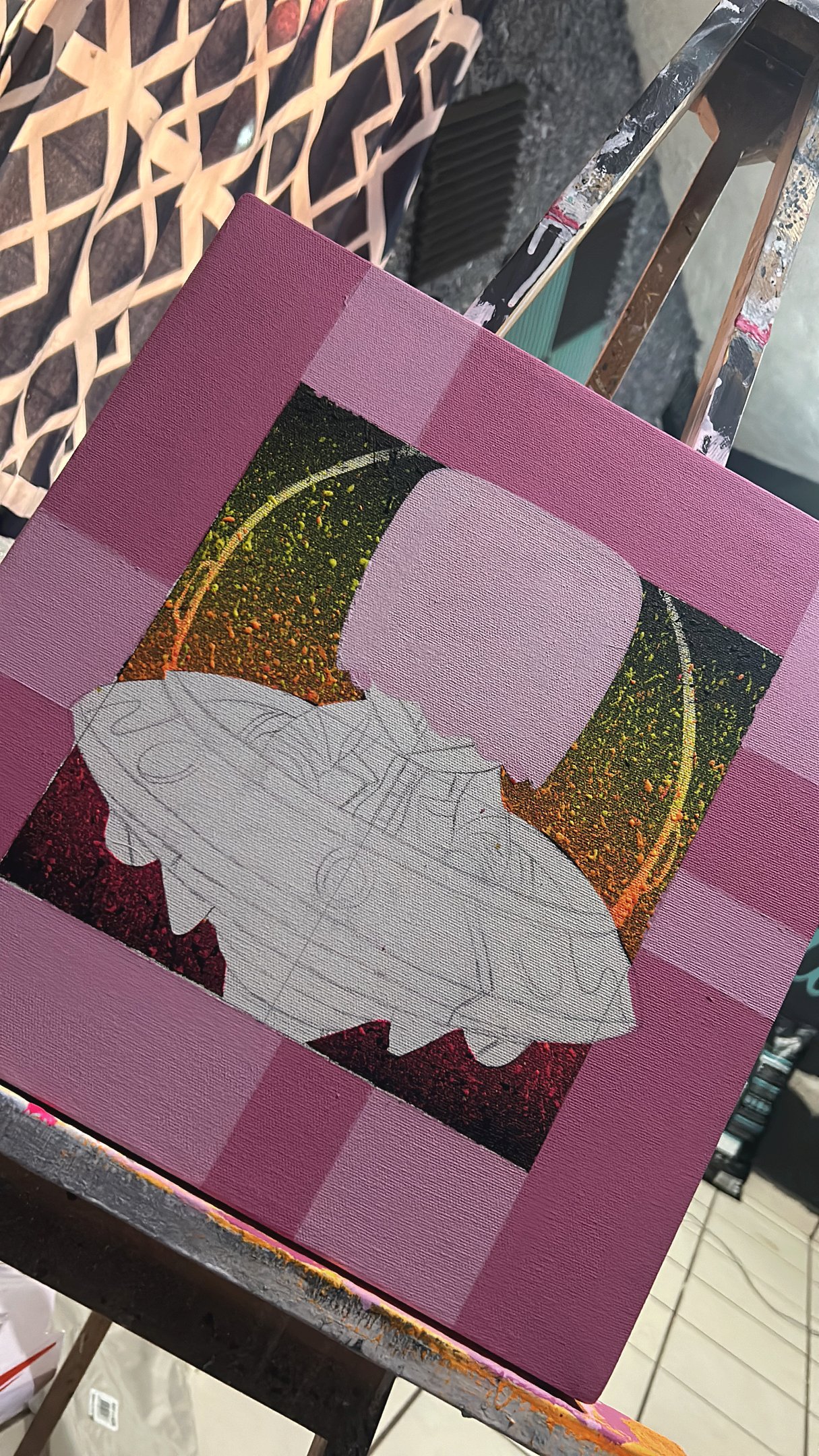 Tras ser seleccionado, desarrollé la obra final incorporando los colores complementarios al rosa, tales como verdes suaves y amarillos cálidos, con el propósito de lograr un equilibrio visual y una armonía cromática que reforzaran tanto la composición como la expresividad del cuadro. Estos colores complementarios no solo añadieron profundidad, sino que también crearon un contraste atractivo que guiaba la mirada del espectador a través de la obra. La interacción entre el rosa y los colores elegidos buscaba simbolizar un diálogo entre distintas emociones, creando un ambiente visual que invitara a la reflexión. A medida que la obra fue tomando forma, sentí que cada aplicación de color se convertía en una extensión de mis pensamientos y sentimientos, sirviendo para transmitir un mensaje más amplio sobre la vida, las relaciones y la conexión entre las personas.