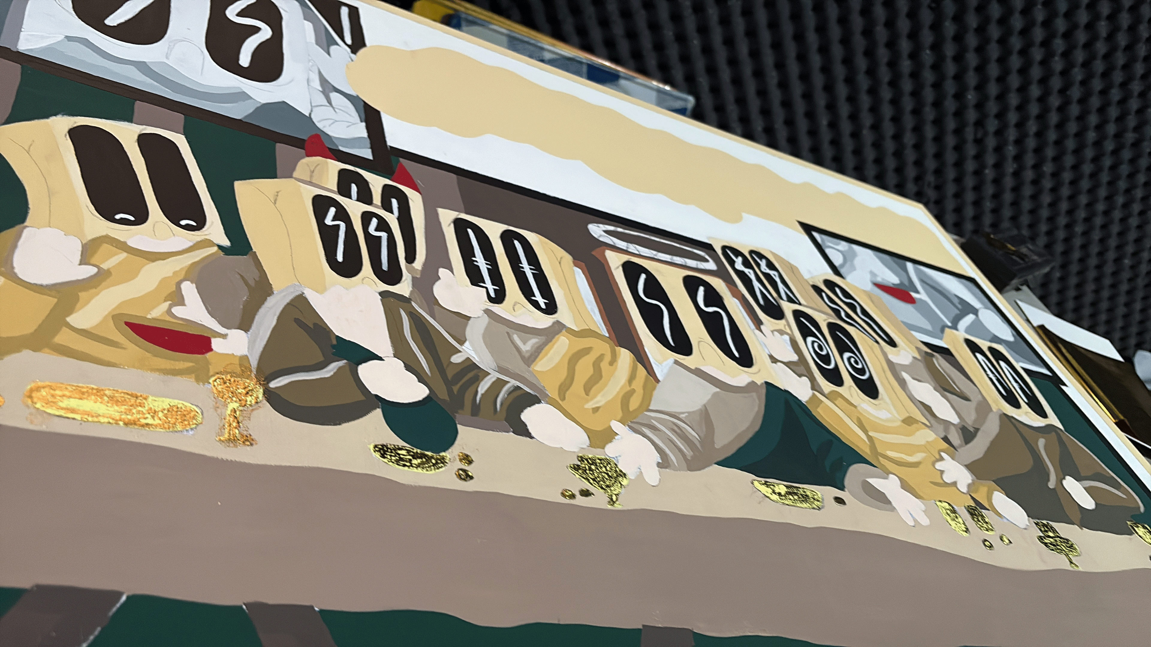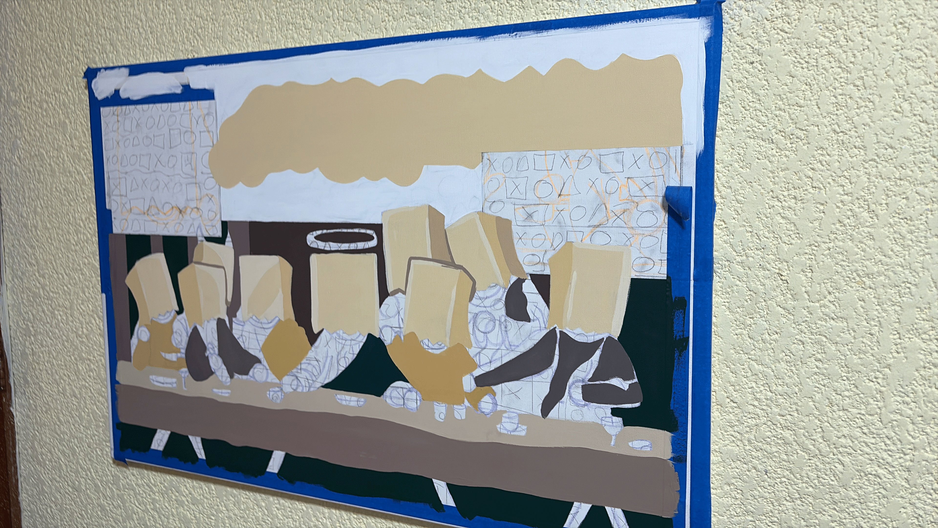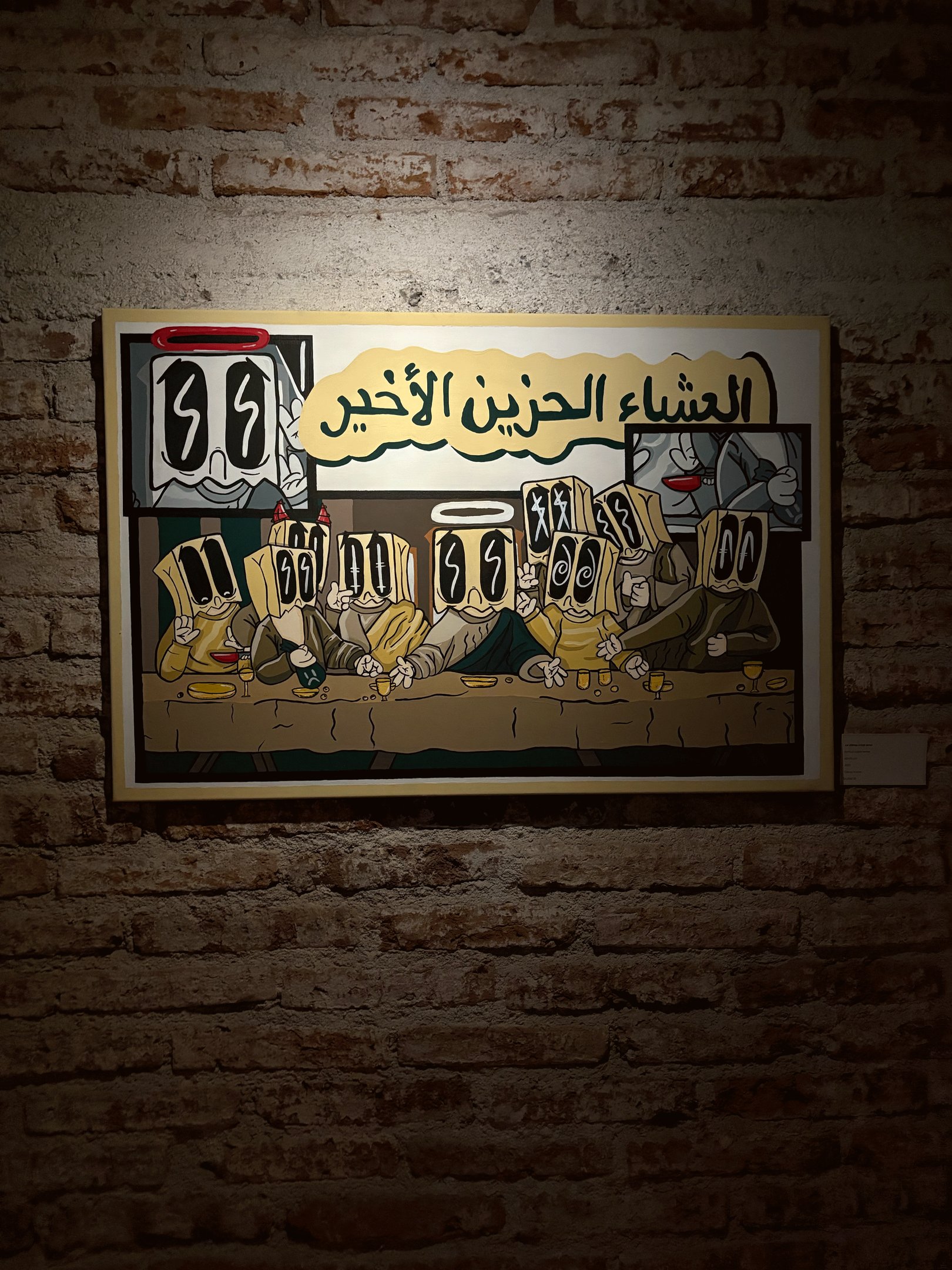 Cuando me invitaron a participar en esta galería, al principio no sabía qué realizar, ya que se realizaría con temática católica, alineada con las tradiciones y celebraciones de la Semana Santa. En este contexto, la presión de crear una obra significativa era alta, lo que generó en mí una gran reflexión sobre el tema. Pasé mucho tiempo pensando en cómo podría transmitir la esencia y el significado de esta festividad tan importante. Después de varios bocetos que no lograban agradarme, decidí centrarme en la representación de la Última Cena, un tema que resonaba profundamente en mi interior. En esta obra, elegí resaltar el cuchillo de Judas, simbolizando la traición y la tensión en ese momento crucial. Además, opté por utilizar una paleta de colores verdes y cafés, colores que se usaban en las pinturas de esa época, lo que les daba un toque auténtico y lleno de historia. Cada trazo que realizaba parecía cobrar vida, y cada vez que me detenía a observar mi trabajo, me sentía más conectado con el mensaje que quería transmitir. Al final, esta obra no solo se convirtió en un proyecto artístico, sino en una reflexión personal sobre la fe, la traición y el sacrificio que son tan centrales en estas narrativas religiosas.